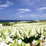 4月中旬からゴールデンウィークにかけ、伊江島リリーフィールド公園一面に広がる百万輪のテッポウユリが来訪客を癒しの世界へと導く。